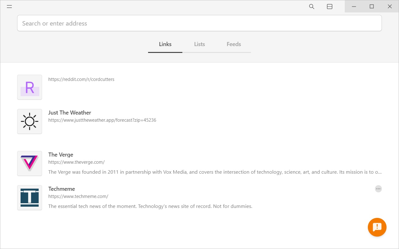 Colibri: If you feel like Min still isn't minimal enough, check out Colibri, which eliminates browser tabs entirely. Instead, you can save links by pressing the + icon while visiting any site, or create bookmark-like lists for your favorites. It'll obviously take some getting used to, but I love the concept of enforced mindfulness about how many tabs you're keeping open. (One caveat: Colibri requires an email address just to download the browser, and an account to use all of its features. As always, consider using a masked email address instead.)