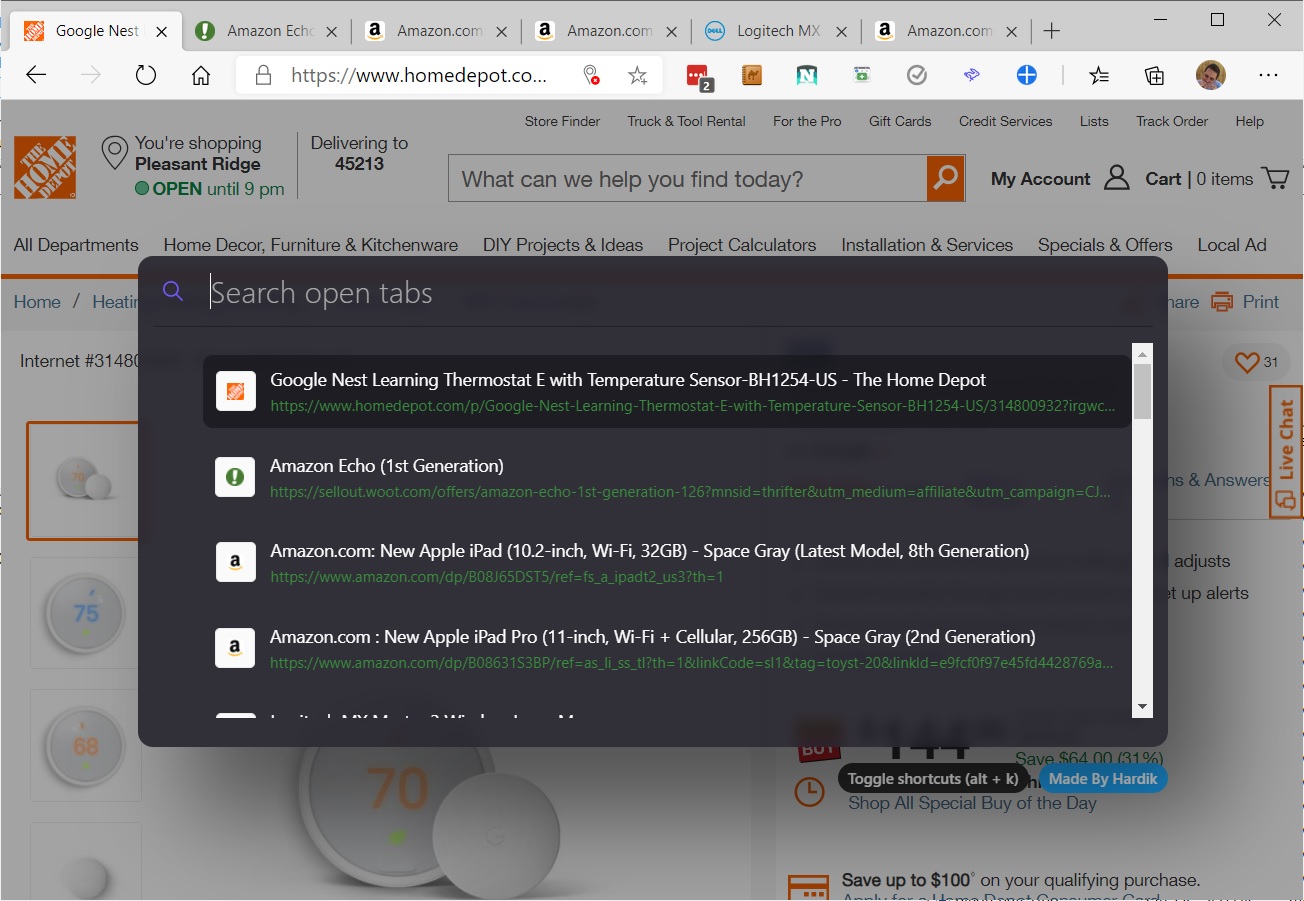 A search tool for tabs: For all those times that you have way too many browser tabs open, a free extension called Hare (for Chrome/Edge or Firefox) might help. After installing the extension, press Ctrl-Shift-Space or Cmd-Shift-Space (on Windows or Mac, respectively) to bring up a search window. From here you can type the name of the tab you're trying to find and use the arrow keys and Enter to pick it from the results list. There's also a handy "previous tab" feature, which lets you toggle between two recent tabs by hitting Ctrl-Shift-U or Cmd-Shift-U.