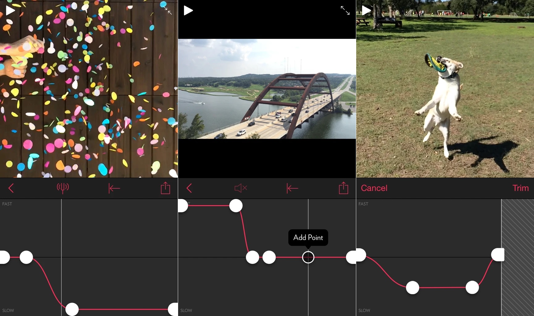 While it's not new, I've been enjoying a free iPhone app called Slow Fast Slow, which provides a simple way to speed up or slow down your videos. Unlike Apple's built-in slo-mo editor, Slow Fast Slow works with any video you've taken—including ones shot at regular speed—and you can have multiple speed changes in a single video.